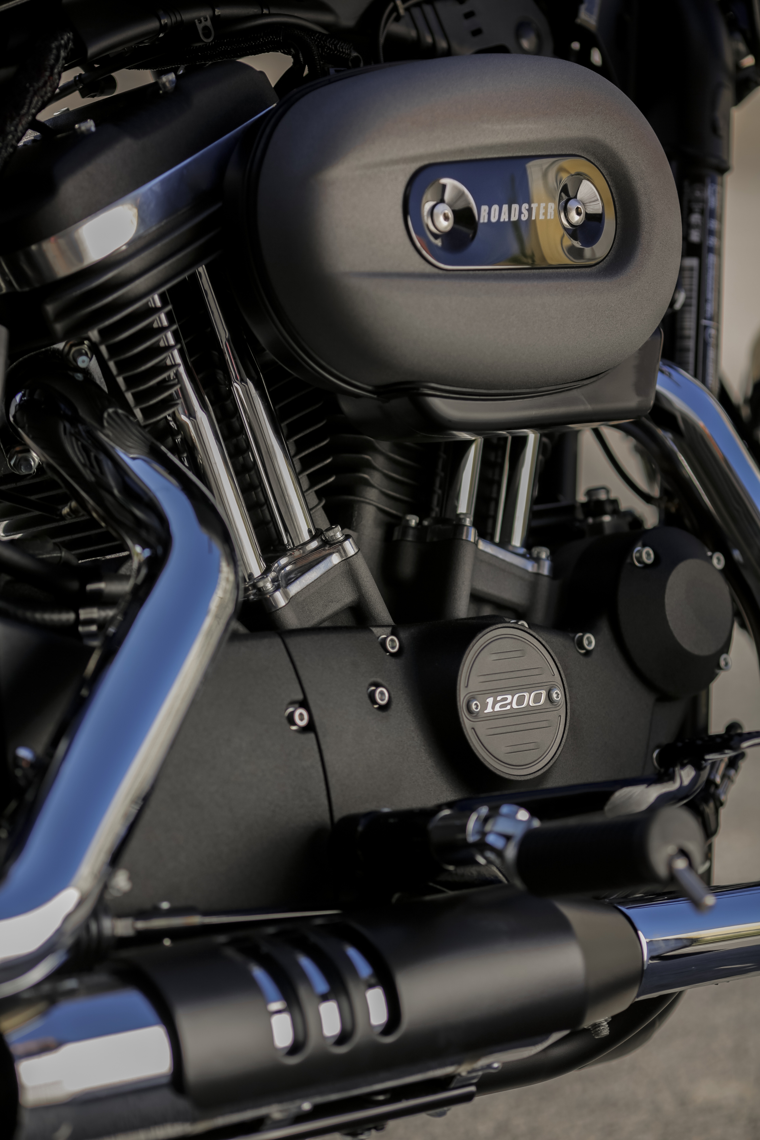Harley-Davidson Roadster modeline önden baktığımız zaman yuvarlak tek farı ile bu Retro tasarım anlayışını açıkça ortaya koyuyor. Tamamen karenajsız, günümüzün çıplak motorlarını andıran rüzgar korumasına dair pek bir önlemi olmayan bir motosiklet olarak dikkat çekiyor önden bakıldığında. Ancak günümüzün çıplak motor ailesine benzetilen tasarım aynı zamanda geçmişten bu güne kadar kendisini yaşatmayı başaran sportster modellerinin genlerini de üzerinde taşıyor.