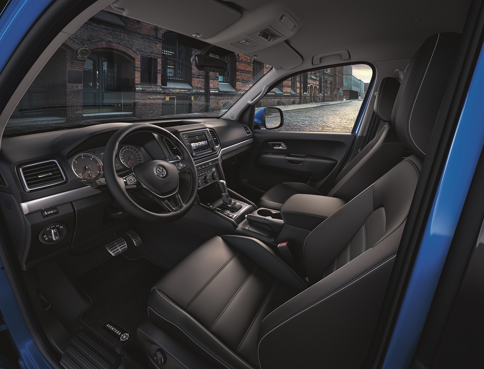 Amarok Aventura’nın iç tasarımında kullanılan özel “Nappa” deri koltuklar ve kaplamalar iç mekanın görüntüsüne şıklık katıyor. 14 yöne ayarlı elektrikli sürücü ve ön yolcu koltuğunda aynı zamanda ısıtma özelliği de bulunuyor. Alman sağlık merkezi AGR tarafından sertifikalı olan ön koltuklar, ergonomisiyle sağlıklı oturuş sağlıyor. Amarok Aventura’da ısıtmalı ön cam yıkama fıskiyeleri, renkli yol bilgisayarı, direksiyon kenarlarında vites kumandası, paslanmaz çelik gaz/fren pedalı gibi standart olarak sunulan donanımlar üst düzey konfor sunuyor.